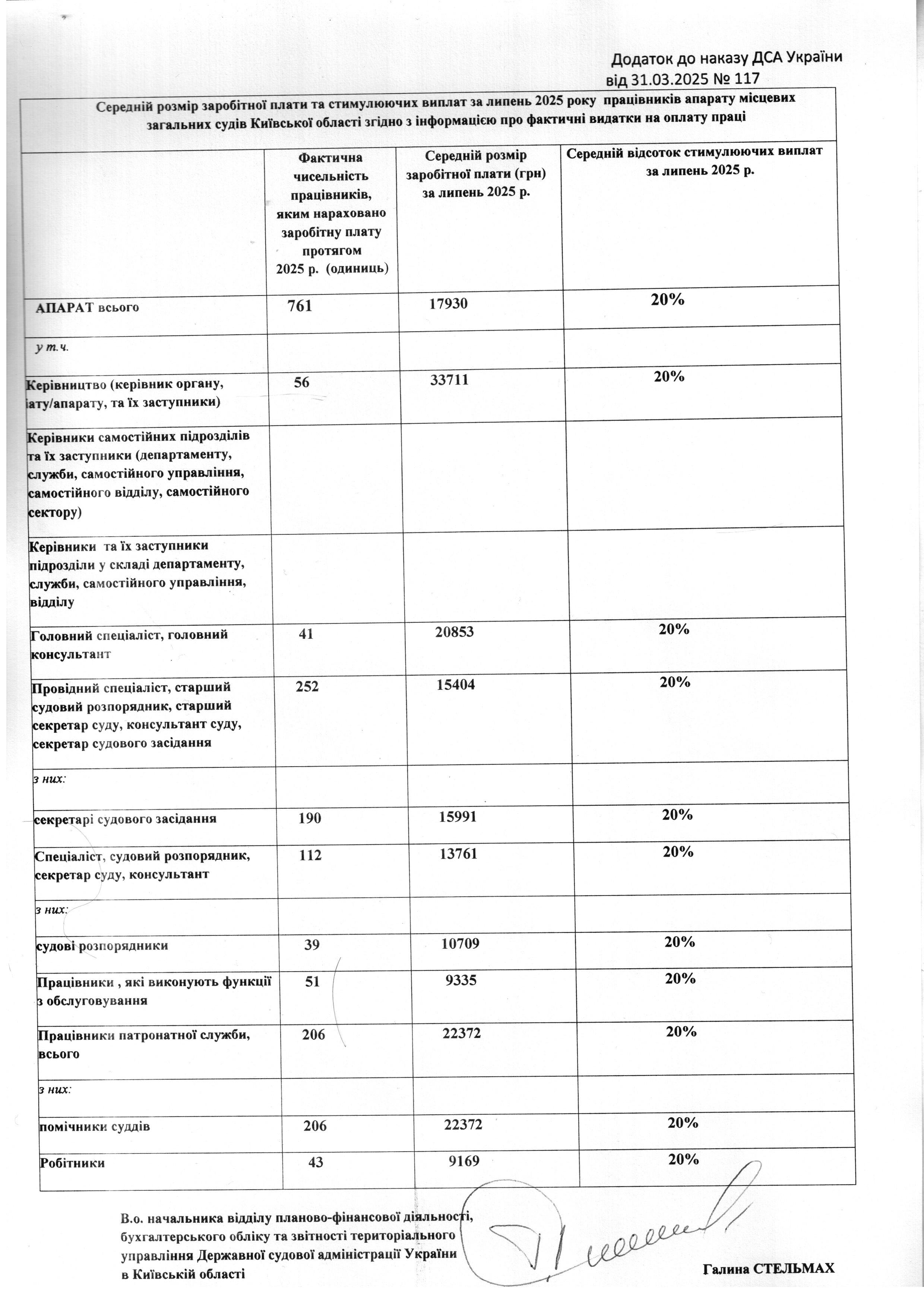 Інформація про середній розмір заробітної плати працівників апаратів місцевих загальних судів Київської області