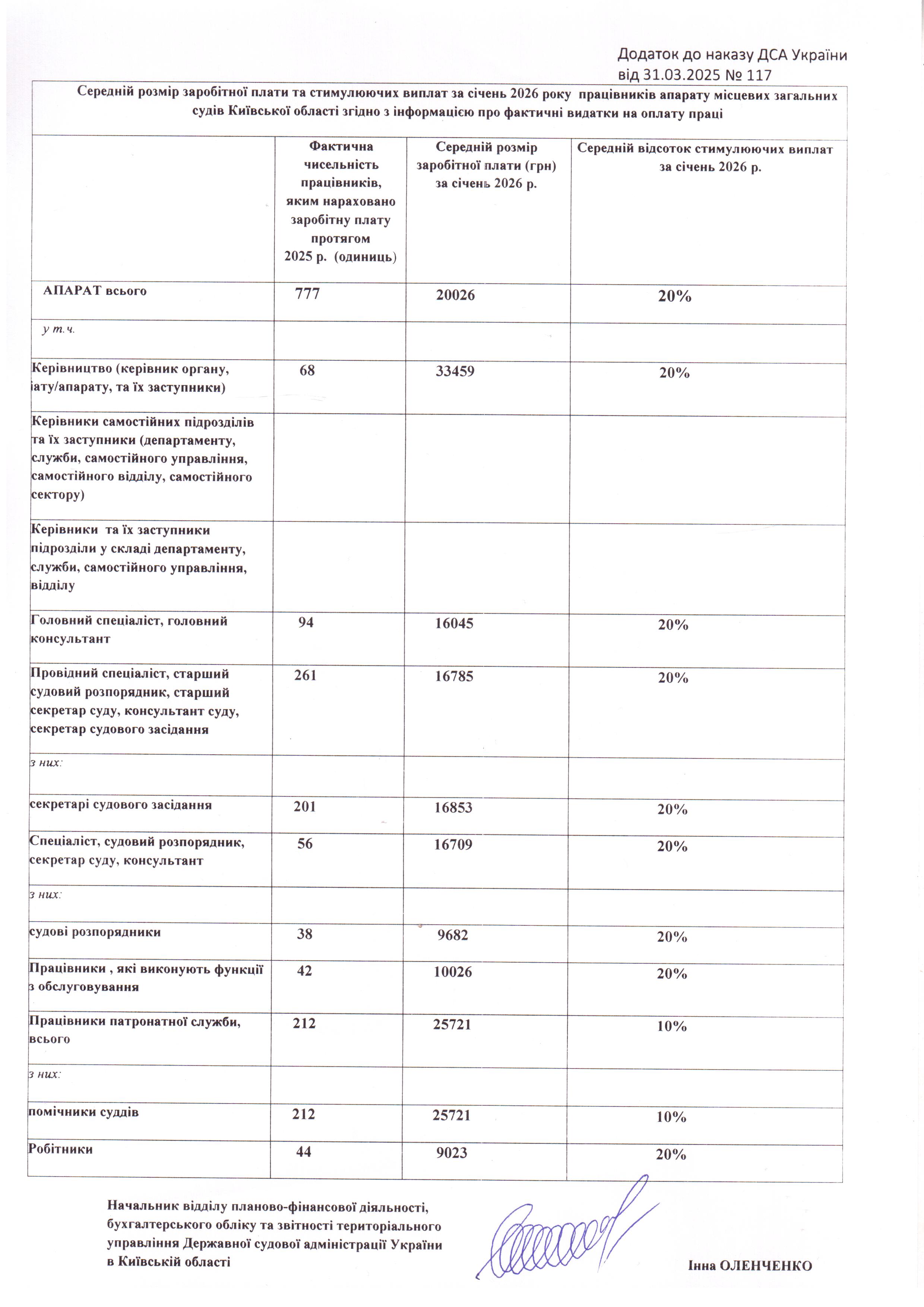 Інформація про середній розмір заробітної плати працівників апаратів місцевих загальних судів Київської області
